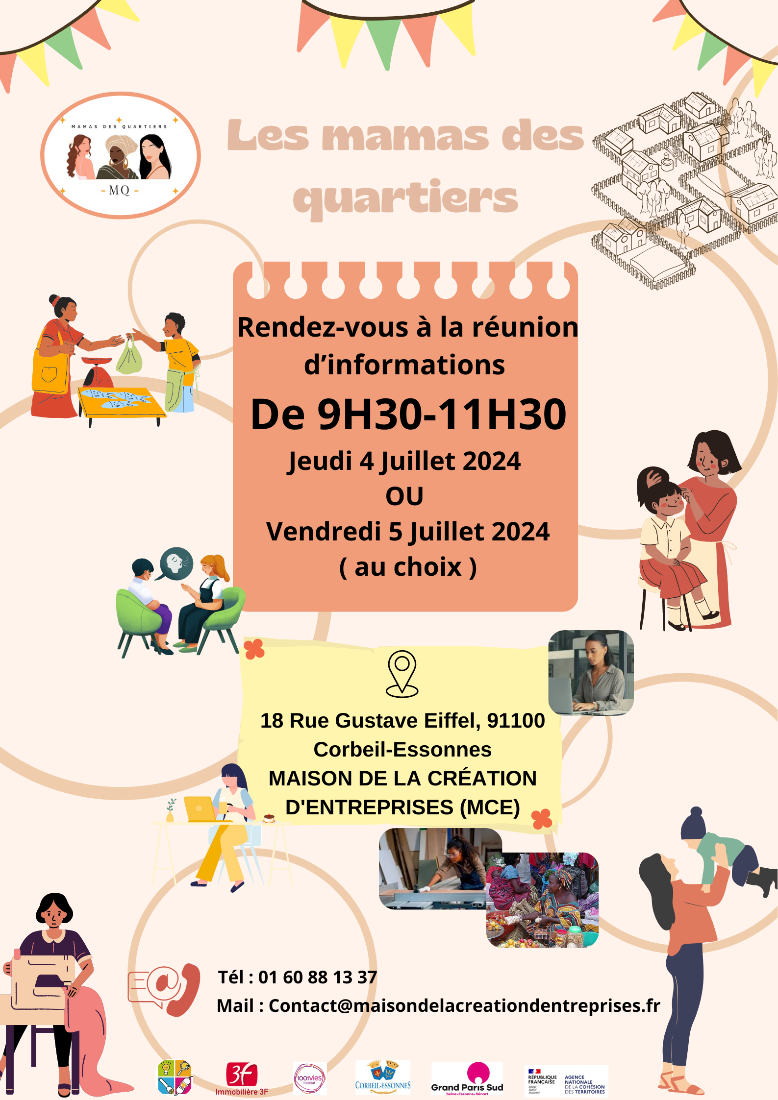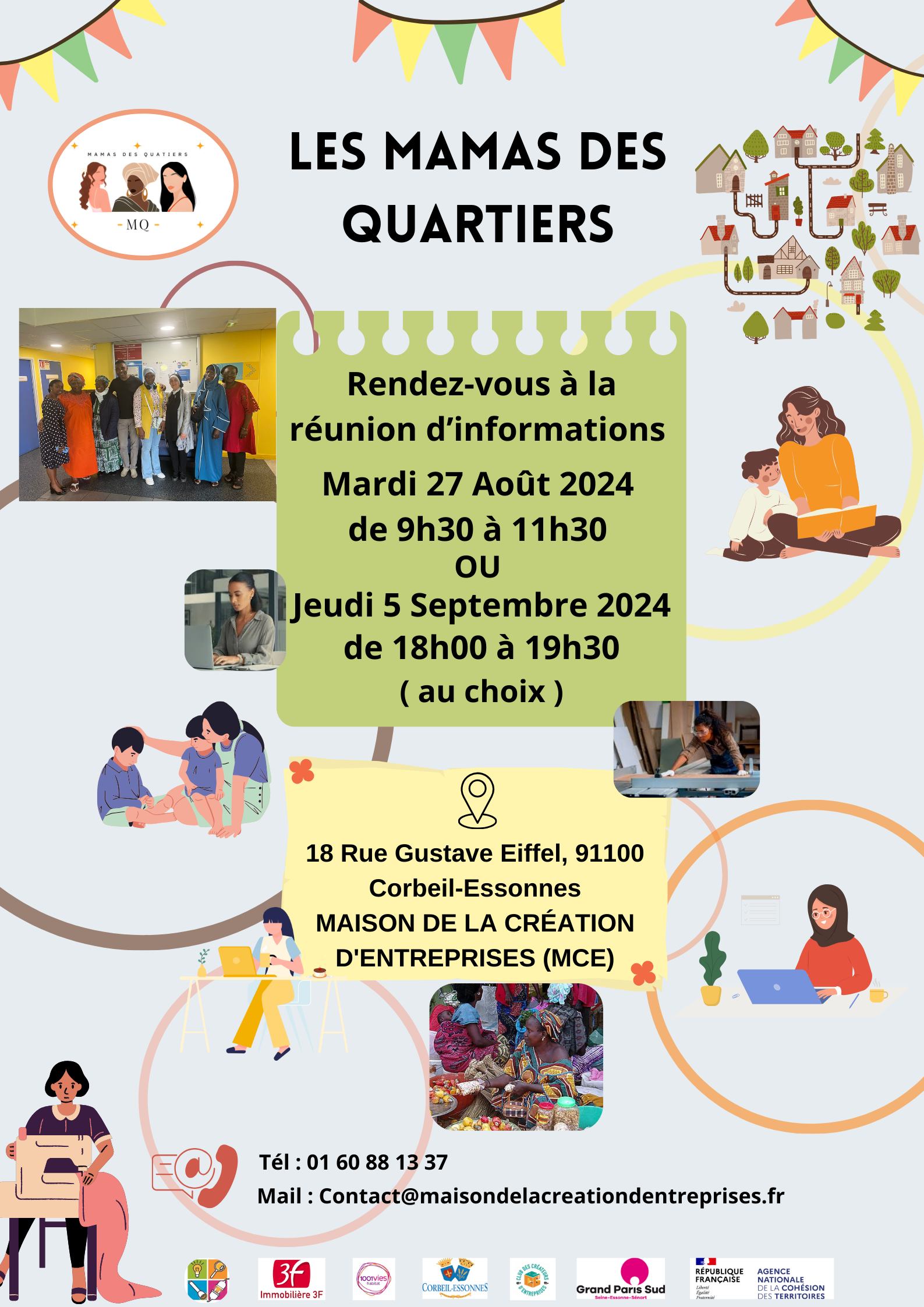 Dès la rentrée en fin août et début septembre, nous allons reprendre l’action des « Mamas des quartiers » avec les réunions d’information. Les prochains rendez-vous auront lieux à la Maison de la Création d’Entreprises le 27 août de 9h30 à 11h30 et 5 septembre de 18h00 à 19h30.